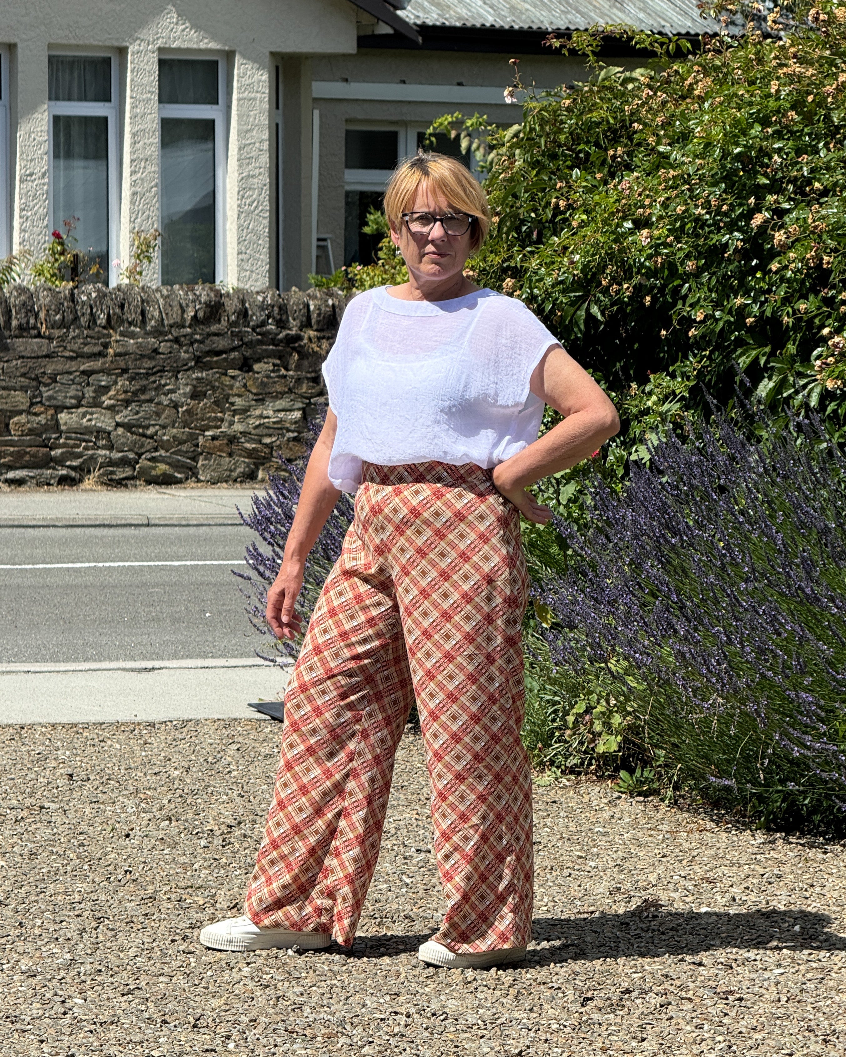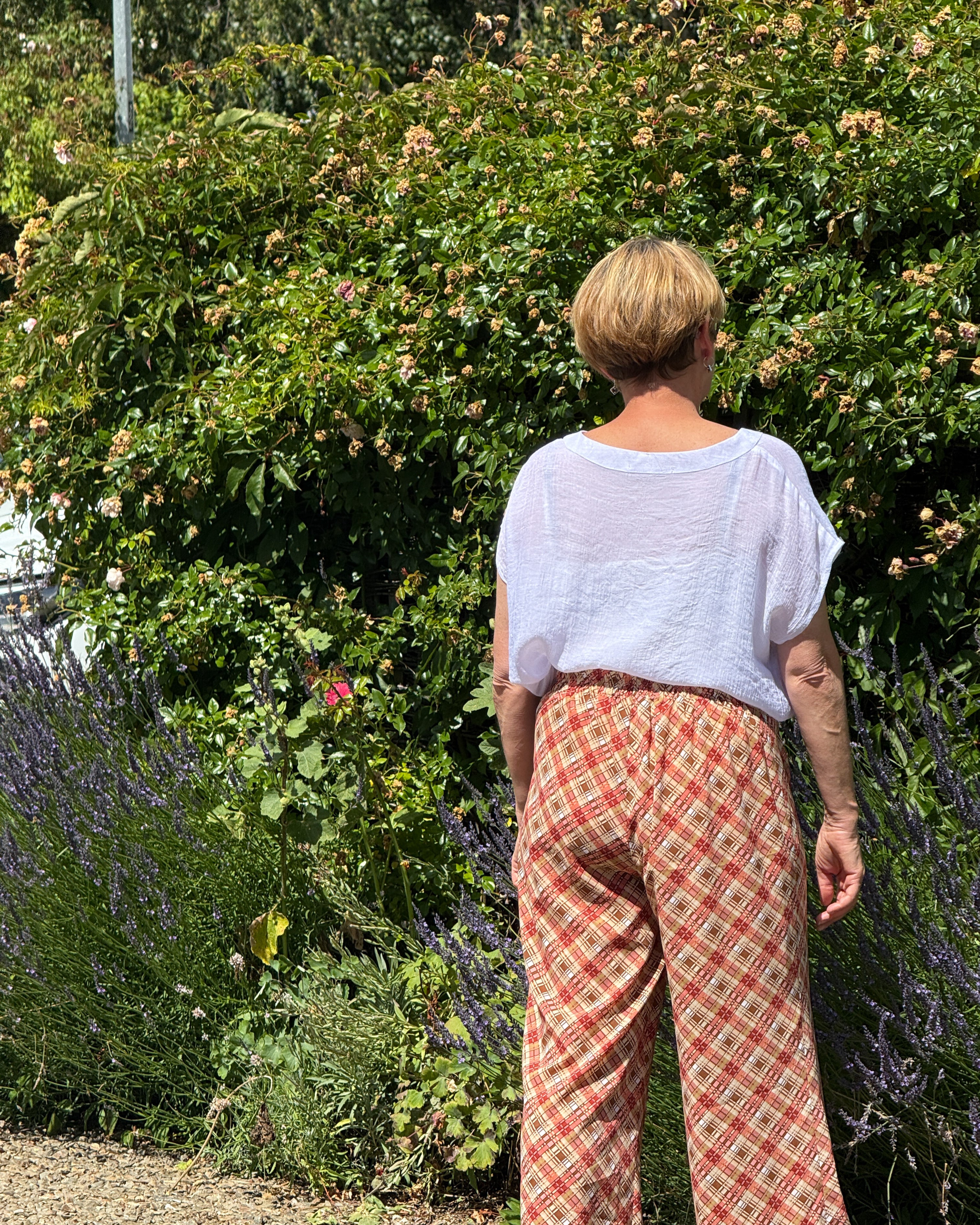 Elastic on back waist and fitted W/B at front. Relaxed through the leg.